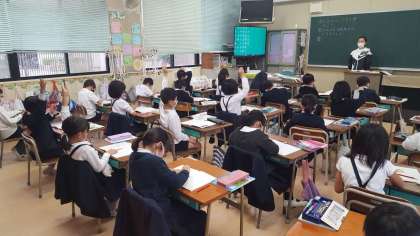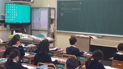 2年生は、算数の授業でした。かけ算の九九の学習をしていました。今日は9の段の見通しを考えていました。自分の意見を積極的に発表していました。