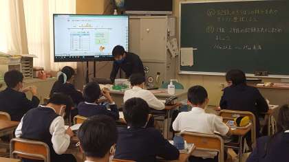 6年生は、算数の授業でした。グラフの整理の学習をしていました。それぞれがデータの散らばりをまとめていました。
