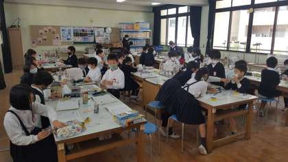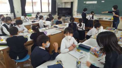 3年生は、理科の授業でした。理科室で電気の実験をしていました。電気を通すもの通さないものの仕分けを、予想をしてから実験していました。みんな予想通りの結果になったのでしょうか。