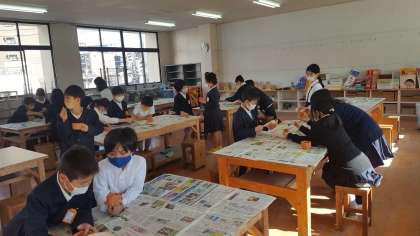 4年生は、図画工作の授業でした。焼き物の学習をしていました。素焼きした物に釉薬を塗る作業をしていました。思い通りの色に焼き上がるといいですね。