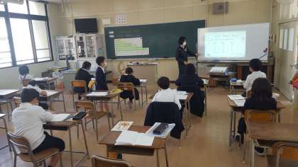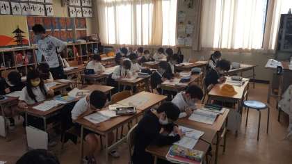 3年生は、算数の授業でした。習熟度別2分割で授業をしていました。分数についての考察を進めていました。