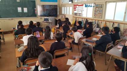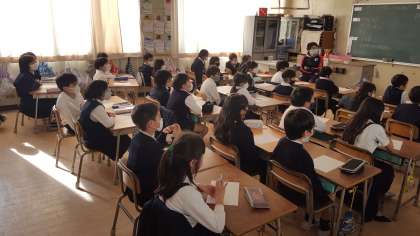 3年生は、道徳の授業でした。映画を見て平和について考えていました。戦争や争いのない世界が早く実現するといいですね。
