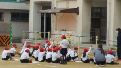 1年生は、体育の授業でした。縄跳びの後、鉄棒運動をしていました。みんなに技を見せたい子が積極的に手を挙げていました。これからも寒さに負けずにがんばりましょう。
