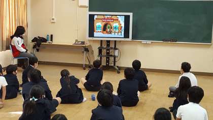 5年生は、英語の授業でした。クリスマスの映像とソングを楽しんだ後、単語の綴りあてゲームを男女対抗でしました。とても盛り上がりました。