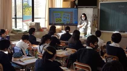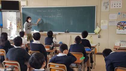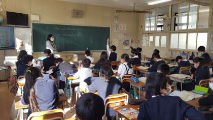 6年生は、英語の授業でした。教室で、担任の先生の “Where was 〜”の質問に答えていました。きちんと聞き取って答えていたので、すごいです。