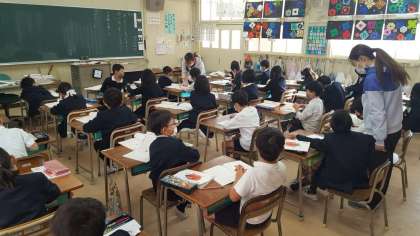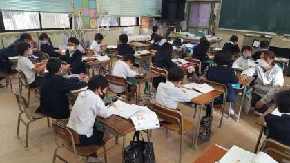 2年生は、国語の授業でした。「ありがとう」を伝えようの単元で、手紙を書く学習をしていました。子ども達は、誰に書こうかと、楽しそうに考えていました。