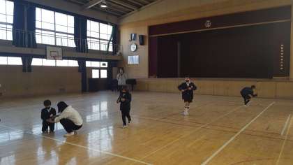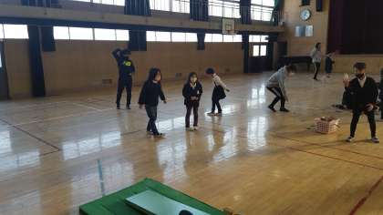 講堂で伝統遊びを行いました。ノルティギ・ペンイ・チェギです。初めて遊んだ子もいましたがやってるうちにどんどん上達しました。汗をかいてがんばった子もいました。楽しい時間は、あっという間に過ぎてしまいました。
