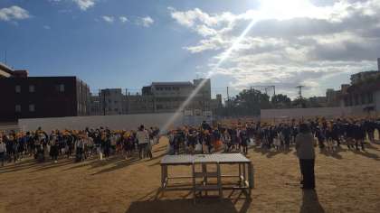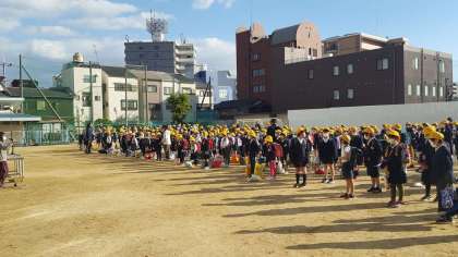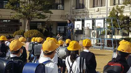 2学期の終業式を運動場で行いました。校長先生の話の後に、生活指導担当より冬休みの暮らしについての注意がありました。