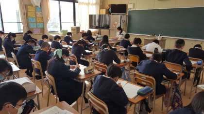 6年生は、社会の授業でした。今までの学習の振り返りをしていました。静かに集中して取り組んでいました。