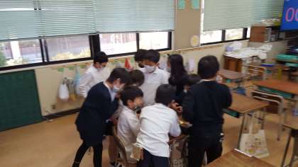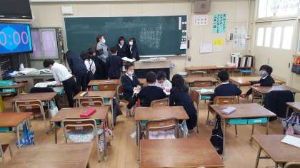 2年生は、学級活動の授業でした。係活動表を作っていました。それぞれ個性的なものを考えていました。教室に行ったら見てあげてください。