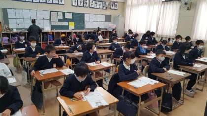 4年生の様子です。一番最初のこくごのききとりの問題にチャレンジしていました。静かに一生懸命に聞き取っていました。