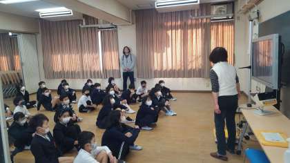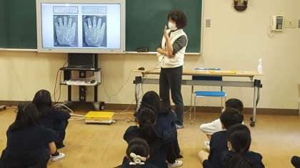 4年生の手洗いについての保健指導の様子です。子ども達は、手についている細菌の量を見て驚いていました。しっかり手を洗うと誓っていました。