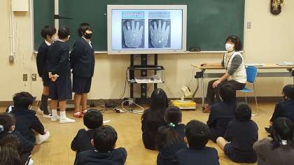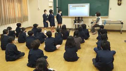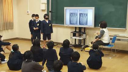 1時間目に、5年生の保健指導がありました。保健委員の子ども達が手洗いについての発表をしました。自分たちで調べた、手についている細菌の増殖についての発表でした。みんな手洗い・消毒の大切さについて学びました。