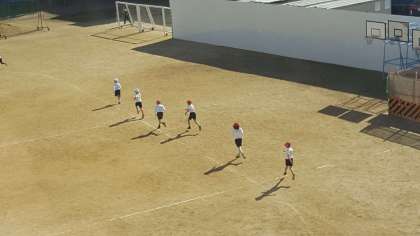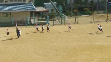 2年生は、体育の授業でした。持久走にチャレンジしていました。みんな自分のペースで一生懸命走っていました。