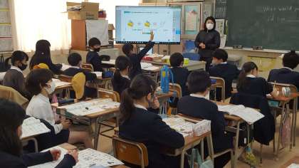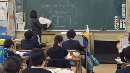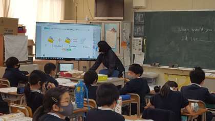 5年生の英語の授業の様子です。買い物クイズをしていました。買ったものの金額を英語で答えていました。そして、千円で買える食事のメニューを考えていました。みんなとても楽しそうでした。