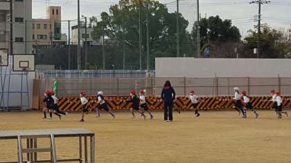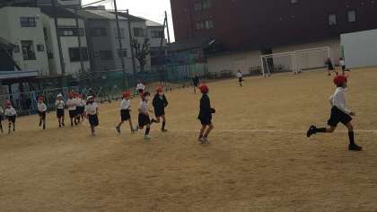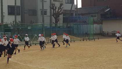 1年生は、体育の授業でした。持久走に挑戦していました。寒い朝でしたが、白い息を吐きながら一生懸命に走っていました。しっかり走って、体力をつけましょう。