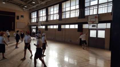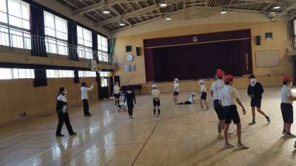 室内運動クラブは、バスケットボールをしていました。パスやシュートの練習をしていました。