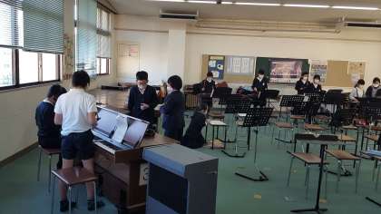 音楽クラブは、「星に願いを」の合奏の練習をしていました。パートごとに分かれて距離を取って練習していました。