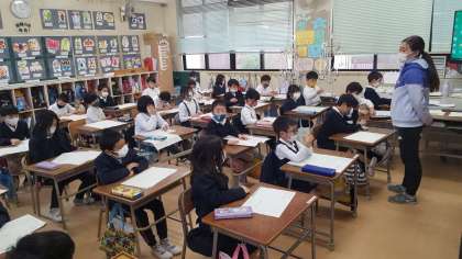2年生は、生活科の授業でした。自分の生い立ちについて、家族から聞いたことをまとめていました。今聞いたことは、大切な思い出として、一生覚えておきましょうね。