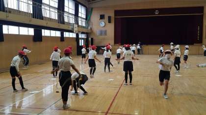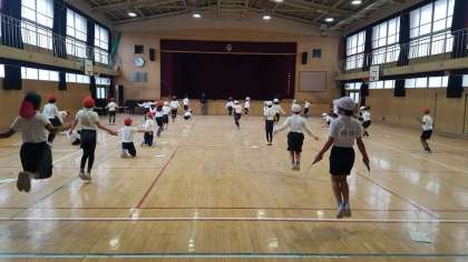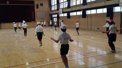 3年生は、講堂で体育の授業でした。今日は雨なので、持久走はお休みです。連続の縄跳びにチャレンジしていました。リズミカルに跳ぶ子が多く、目標をクリアしていました。