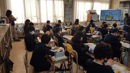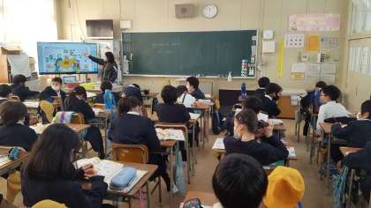5年生は、英語の授業でした。お正月についての英語の質問に答えていました。5問のうちいくつかは難しい質問でしたが、子ども達は、的確に答えていました。