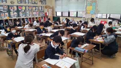 2年生は、算数の授業でした。千の位の数のまとめの練習をしていました。