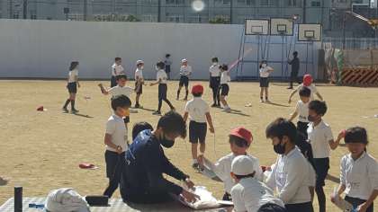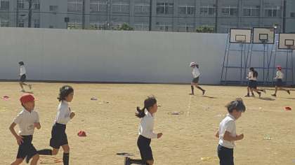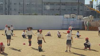 3年生は、体育の授業でした。縄跳び運動と持久走をしていました。どちらの運動も音楽に合わせて行っていました。子ども達は、音楽に合わせてリズミカルに運動を続けていました。