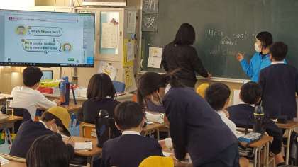 5年生は、英語の授業でした。マイ ヒーローについての文を書いていまいした。なぜヒーローなのかを考えて、英語で表していました。