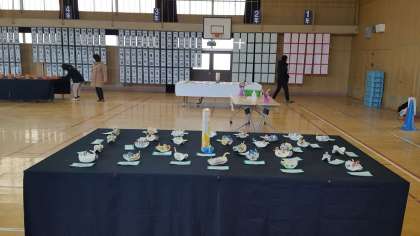 本日より陶芸展が始まりました。子ども達の陶芸と習字の作品を展示しています。新型コロナウイルス感染症対策をふまえて、学芸会と入れ替えて2年続きでの開催です。今年もいい作品が集まりました。どれも力作ばかりです。