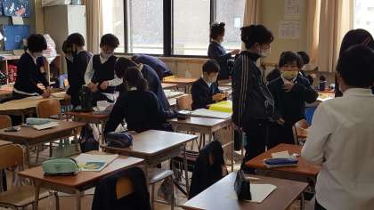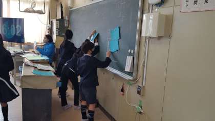 4年生は、学級活動の授業でした。2分の1成人式の準備をしていました。それぞれグループに分かれて練習をしていました。