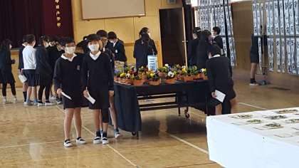 6年生は、図画工作の授業でした。陶芸展の鑑賞をしてました。じっくり観察して、気づいたことをその場で記入していました。