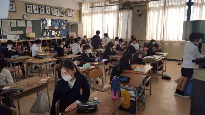 4年生は、学級活動の授業でした。卒業生に贈るメッセージカードを作っていました。来週からはもう3月です。そろそろ準備を始めないといけない時期になってきました。本当に月日の経つのは早いものです。