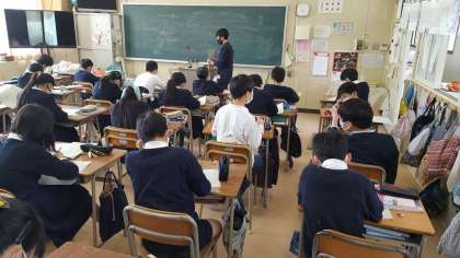 6年生は、理科の授業でした。テストをしていました。卒業まであと何枚テストをするのでしょうか。日に日に減っていきますよね。うれしいような悲しいような………。