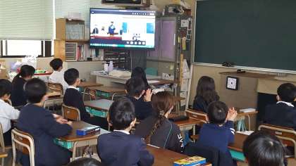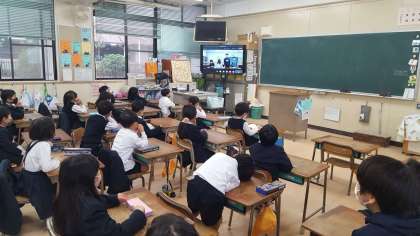 学級での様子です。クイズで盛り上がっていました。画面越しでしたが、みんな楽しんでいました。