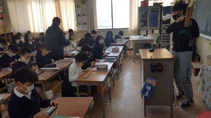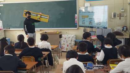 3年生は、算数の授業でした。そろばんの学習をしていました。そろばんの使い方、玉のはじき方から、計算の仕方まで学びます。しっかり練習して、使いこなせるといいですね。