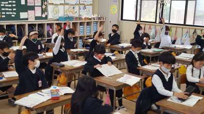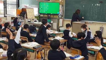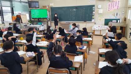 1年生は、国語の授業でした。「スイミー」の学習をしていました。魚たちの気持ちを読み取っていました。発表したくて、いっぱい手が上がっていました。