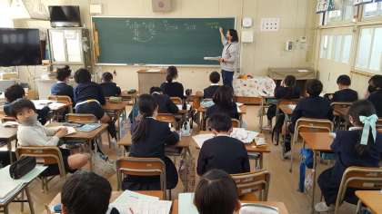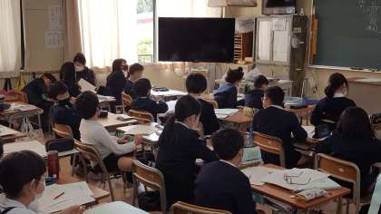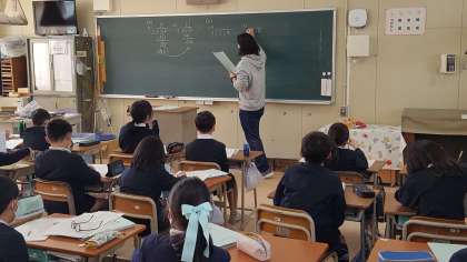 4年生は、算数の授業でした。テストの答え合わせをしていました。先生の解答を聞きながら間違いを直していました。