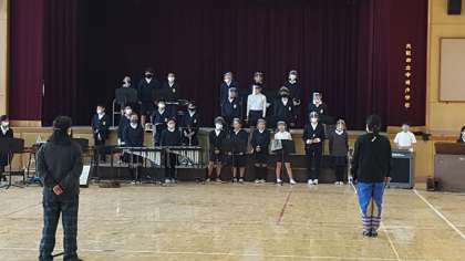 5年生は、講堂で卒業お祝い集会の練習をしていました。送る言葉と合奏合唱をしていました。さすが5年生です。言葉にも演奏にも迫力がありました。