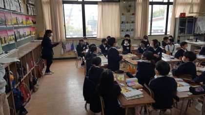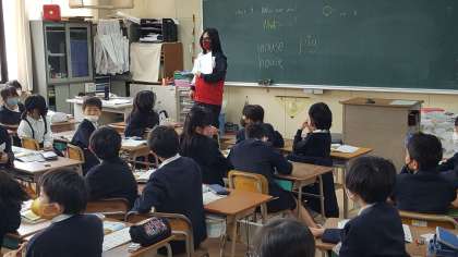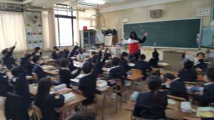 3年生は、外国語活動の授業でした。カードを使いゲーム形式で、動物の名前を憶えていました。発音がきれいで、とても聞きとりやすかったです。