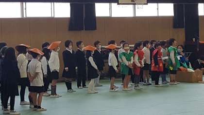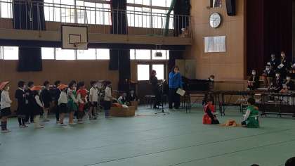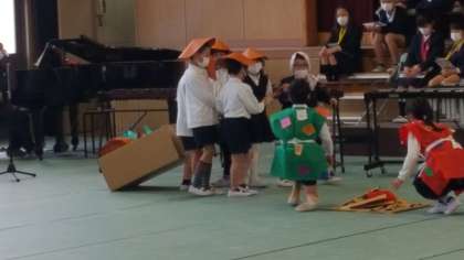 2年生は、笠じぞうの劇をからめてお祝いのメッセージを伝えていました。歌も上手でした。