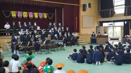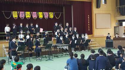 4年生は、メッセージと舞台を使っての合奏を贈りました。とても上手でした。