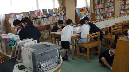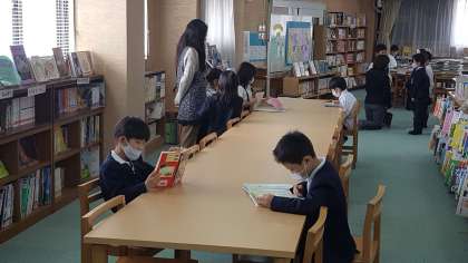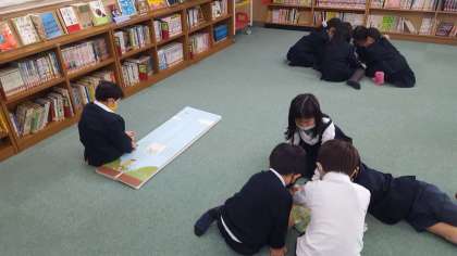 1年生は、読書活動の授業でした。図書館で思い思いの本を読んでいました。本の中には、大きなものもあります。このような本は、大きいのでじゃまになるし、家では中々買えないですね。