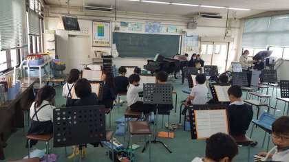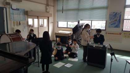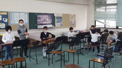 2年生は、音楽の授業でした。音楽室でパートごとに分かれて合奏の練習をしていました。それぞれにがんばっていました。