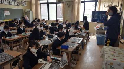 4年生は、図画工作の授業でした。版画の仕上げをしていました。この後、刷り上がった版画に色をつけます。もうすぐ完成です。