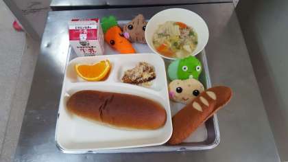 今日のメニューは、豆腐のミートグラタン・押し麦と野菜のスープ煮・デコポン・黒糖パン・牛乳です。