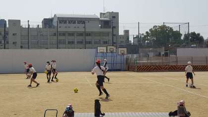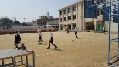 6年生は、体育の授業でした。サッカーをしていました。各班に分かれて、練習をしているところです。この後に試合をします。大事な時なので、くれぐれも怪我にだけは気をつけましょう。