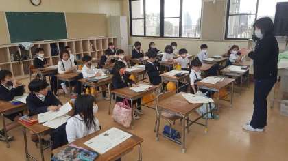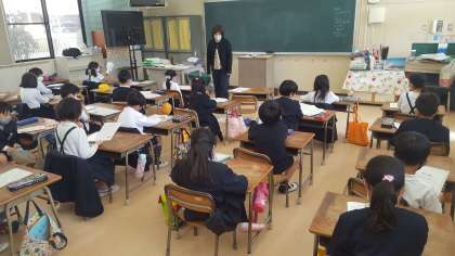 1年生の学級の様子です。4月の予定を見て、話をしていました。次に登校するときは2年生です。楽しみですね。