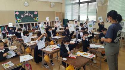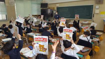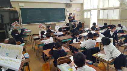 2年生の様子です。教科書やノートの記名の確認をしながら、片付けていました。書いた名前を先生に見せていました。
