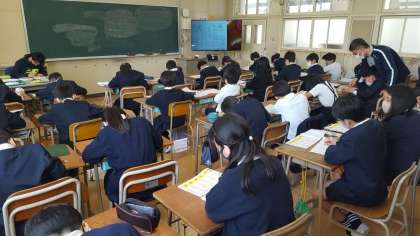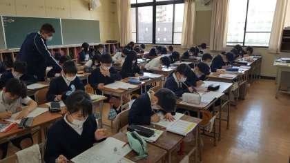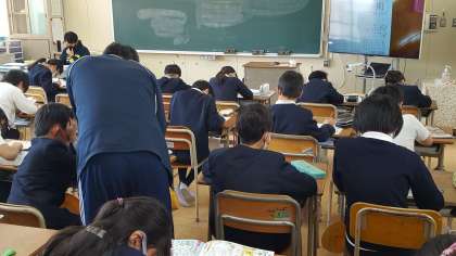 5年生は、国語の授業でした。新出漢字をプリントで練習していました。静かに集中して書いていました。さすが5年生ですね。