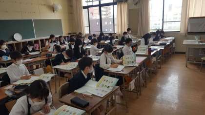 5年生は、理科の授業でした。1年間の理科の授業のガイダンスをしていました。子ども達は、どんな学習をするのか興味津々で聞いていました。